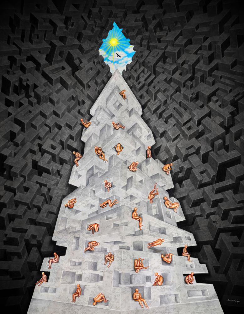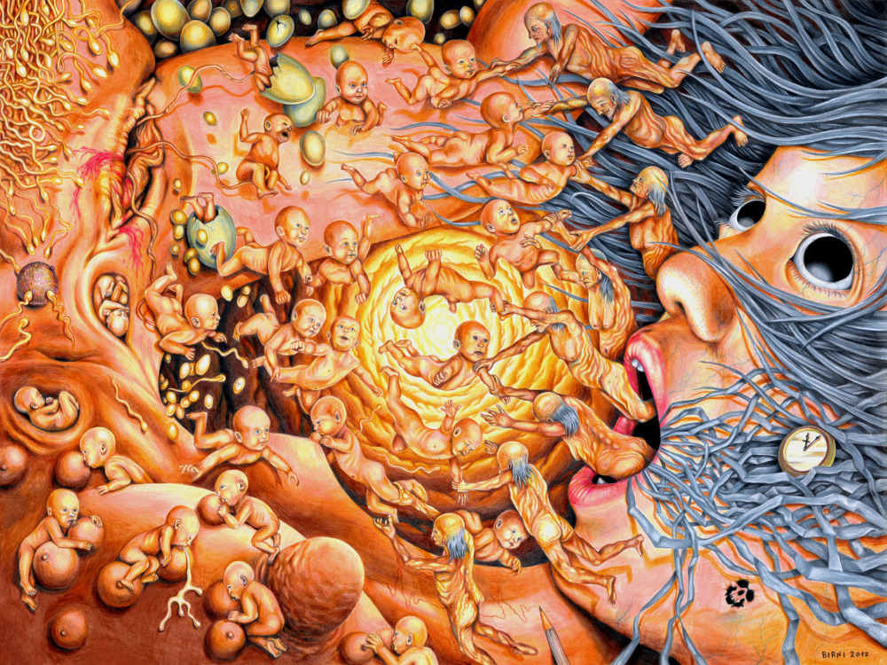 Austrian artist, living in Graz, Michael Birnstingl creates fantastic, psychedelic surrealistic drawings in colour pencil. His artworks are usually very detailed drawings or painted stories featuring biblical dreams and thoughts shrouded in issues of modern times. The pictures range from rotating images with several different display options, optical illusions and double vision images with a number of hidden single motifs and symbols.