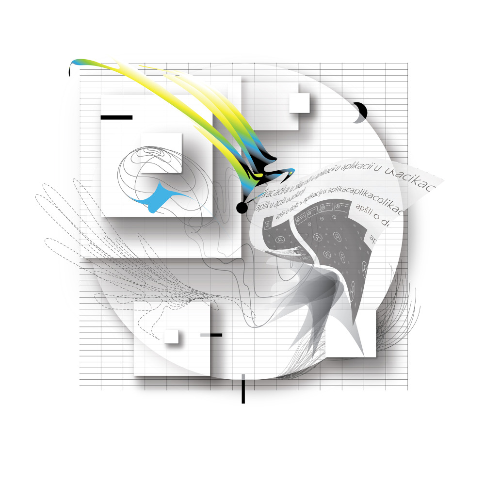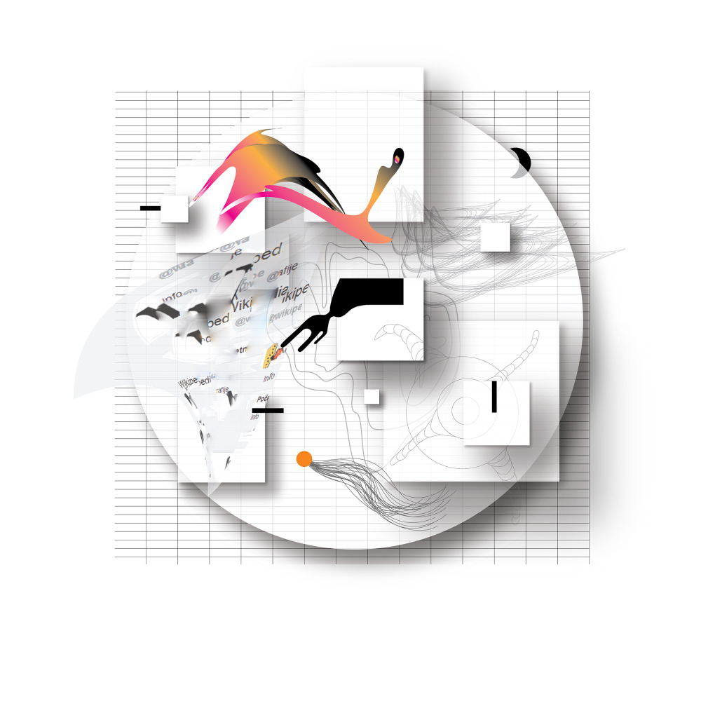 Mia Vucic, born in 1981 in Zagreb, Croatia, is a digital graphic artist whose interdisciplinary practice spans drawing, printmaking, and motion graphics. Her work investigates the complex interplay between technology, identity, and human spirituality, employing techniques such as digital collage, glitch aesthetics, vector art, and animated media.