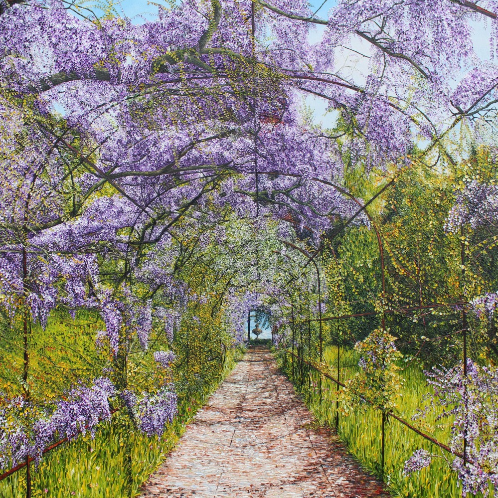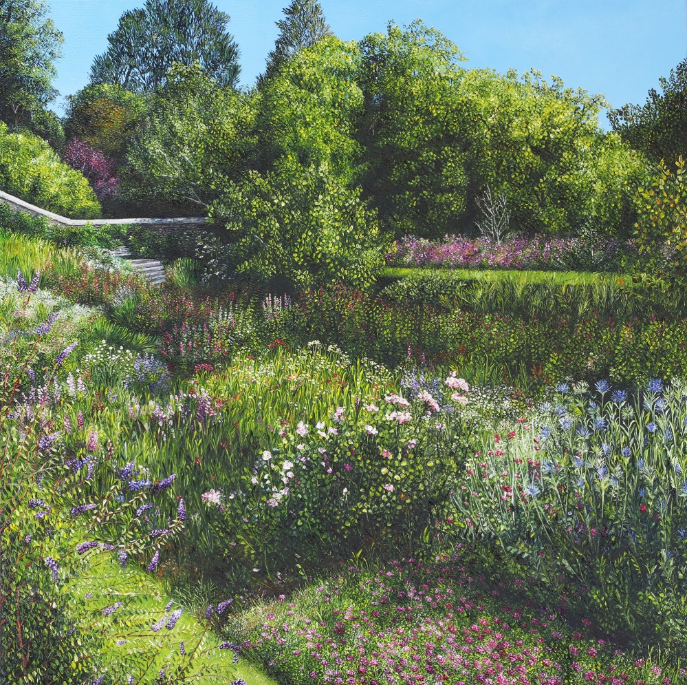 Each painting is created over many weeks, from the moment on-site when the composition is considered and photographically captured, to the slow layering of thick luxurious oil paint. Bright with colour and deep with texture, the whole pleasurable process can be viewed in each painting as though you are standing by the artist, observing the magnificent view.