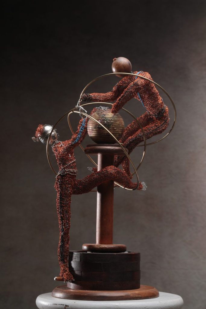 Wood has exhibited widely, with major appearances at the Florence Biennale, in Cologne, and at numerous venues across the United States. Following the loss of her husband in 2019 and a period of creative silence during the pandemic, a music video unexpectedly reawakened her artistic drive. This moment of inspiration gave rise to her ongoing sculptural series “The Three Ring Pandemic Circus”, a body of work marked by poignancy, resilience, and a deeply personal narrative.
