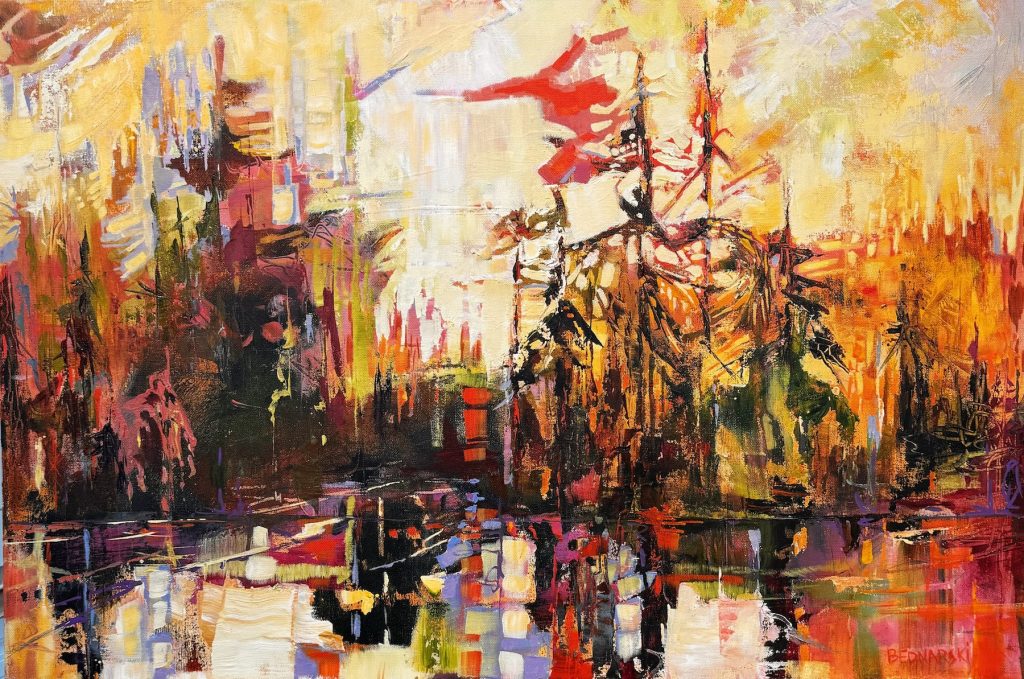 "I often start a painting by playing with colour, line and texture. I just allow my intuitive urges to guide me. At some point the painting shows me something, the hint of a place, an image, or just a mood. I get a feeling that I react to and that’s when the painting starts to take shape. The rest of the journey is a dance between intuition and controlled response."