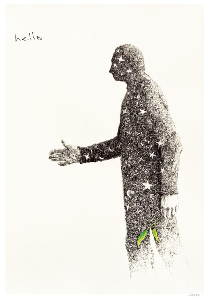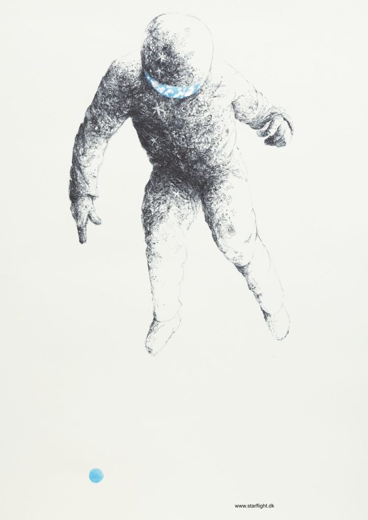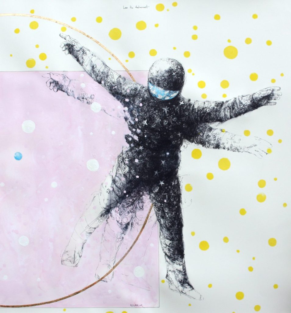 Leo the Astronaut - Ink and acrylic on paper 100 x 100 cm, €950, unframed
