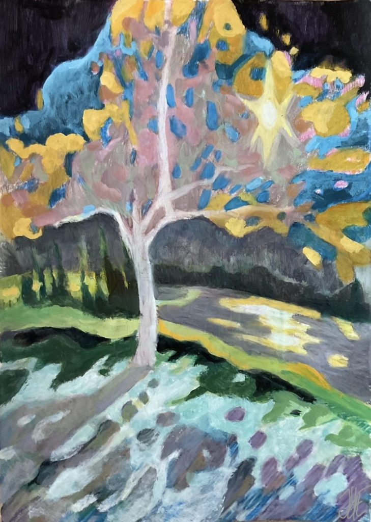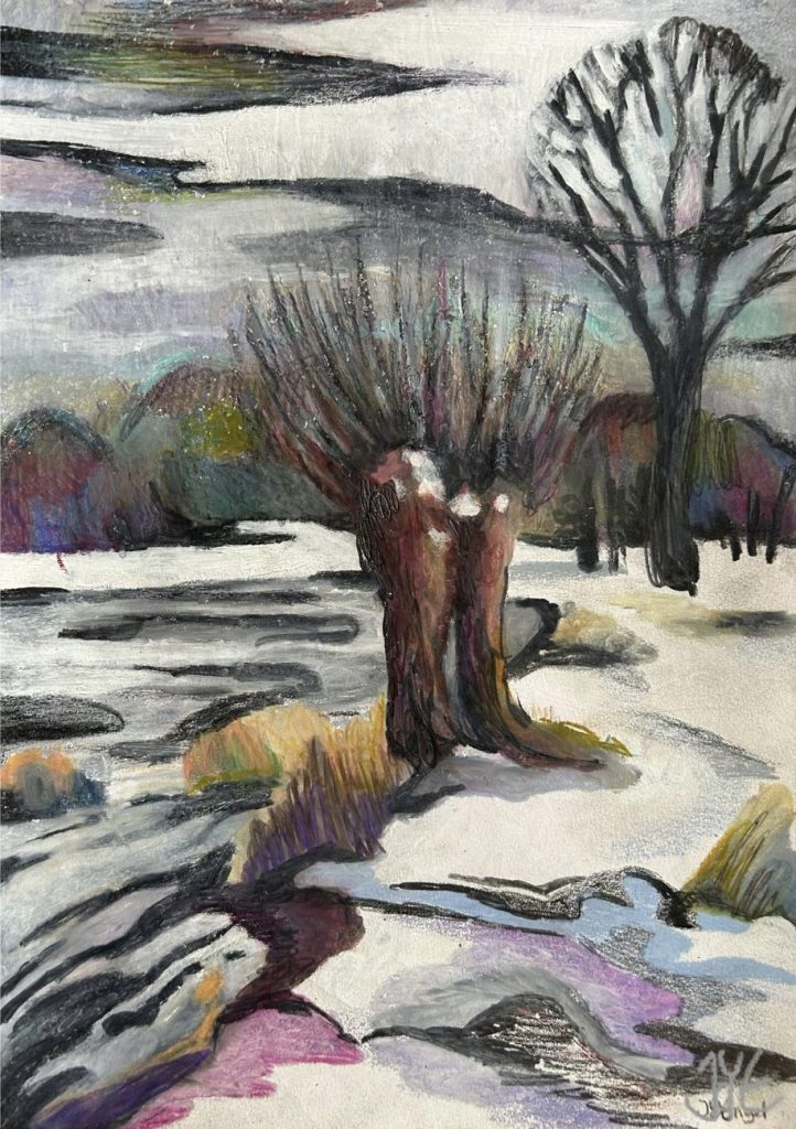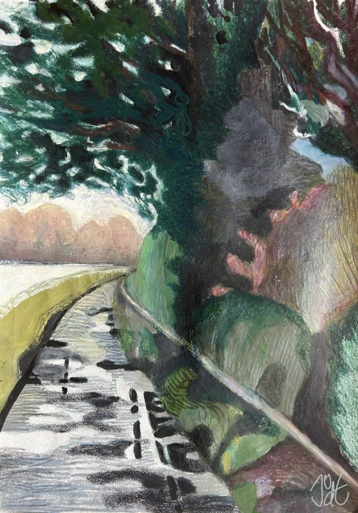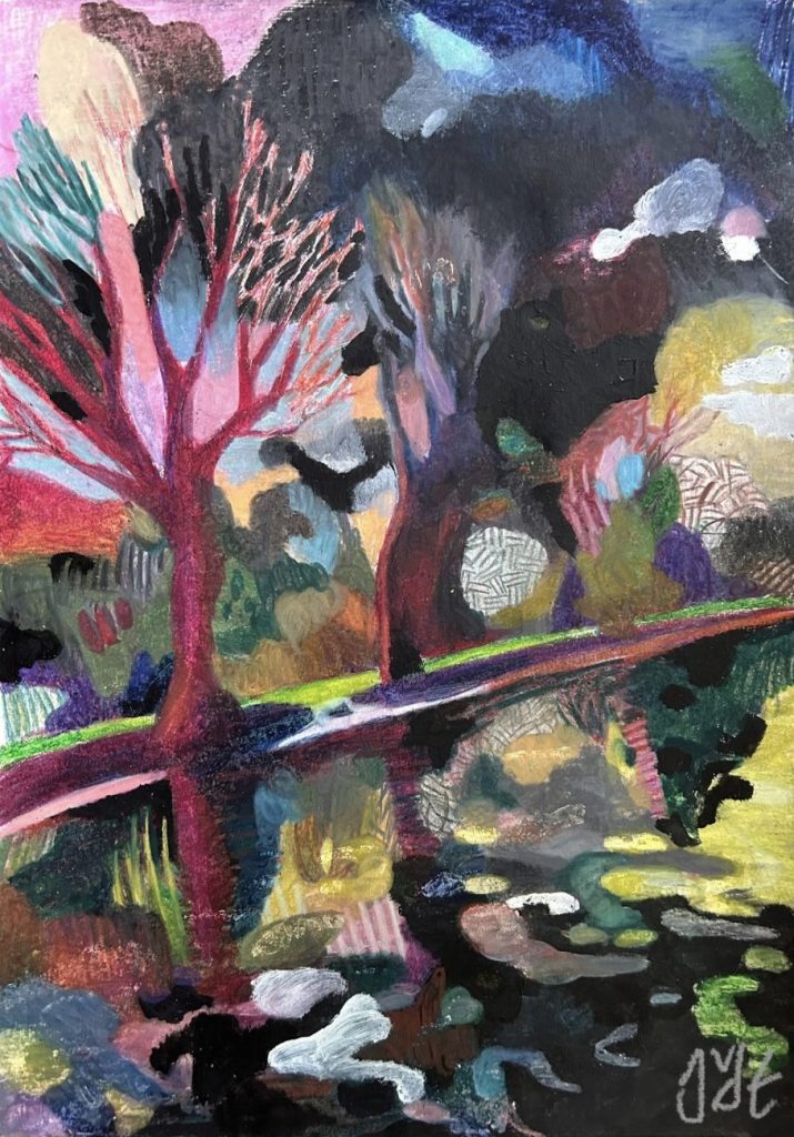 Different mediums are important to me. In the past it was predominantly oil paint, but now it's mostly acrylics, colored pencils and collage techniques. Only recently, since 2020, I started working with colored pencils. I am simply in love with them, because of the options this medium offers and how you can use them. It feels a bit like magic. Somehow they fit me like a glove and enabled me to delve deeper into my creativity. Many of my drawings and paintings were not completed in the same year that I started them; they evolved over a span of 1 to 6 years. Some drawings contain (a bit) acrylics in this finishing process. The first reason for this was practical, because I started to damage the paper with the numerous layers of pencil lines trying to change the drawing once again. The second reason was that it gave me the opportunity to bring back some calm and even surfaces (with a brushstroke rather than adding more small pencil lines."