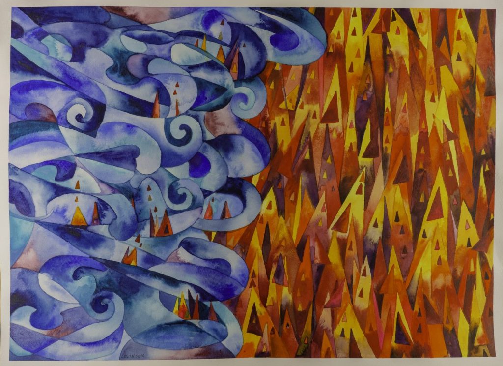 Ralph Levinson is a self-taught artist who embodies the idea that it is never too late to begin anew. Although he has held a lifelong interest in art, it wasn’t until his retirement at age 75 that a profound wave of creativity took hold. Levinson holds a BFA and MFA from the School of the Art Institute of Chicago, and while his formal education laid the groundwork, it is only in recent years that his artistic vision has come fully alive. He focuses on non-traditional watercolor techniques, pushing the medium beyond its conventional boundaries.