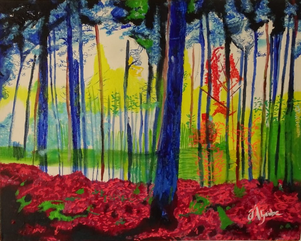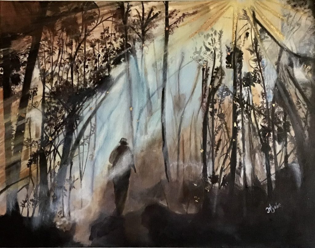 Jo's art is a journey in storytelling. Inspired by landscapes and driven by a desire to evoke emotions. Each piece reflects a blend of observation and emotion. Using gold, bronze, and silver leaf, adding a captivating dimension with light and metallic allure, drawing viewers into the artwork. Embers is a piece of devastating fires raging through Queensland. Josie captures the moment in this painting.