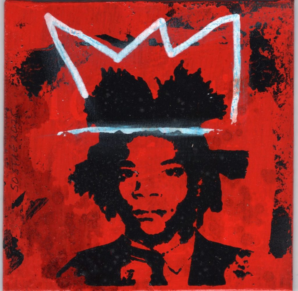 Basquiat 1 - Acrylic and silkscreen on wood panel 6 x 6 in $650