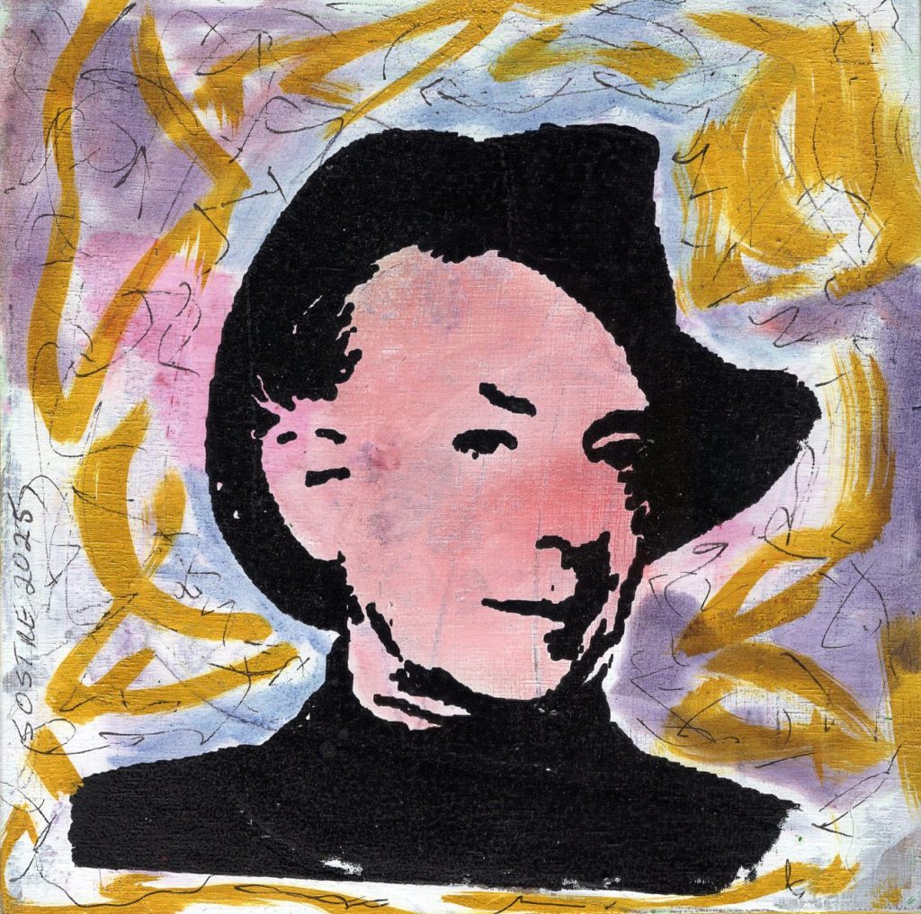 Quintin Crisp 1 - Acrylic, ink, and silkscreen on wood panel 6 x 6 in $650