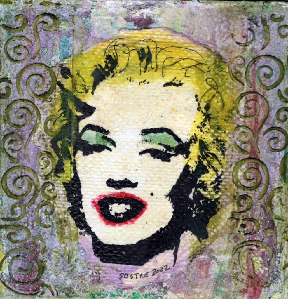 M.M. #31 - Acrylic, silkscreen, mold paste, and oil stick on wood panel 6 x 6 in $650