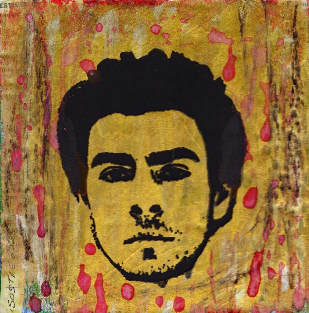 Luigi - Acrylic, silkscreen, and ink on wood panel 6 x 6 in $650