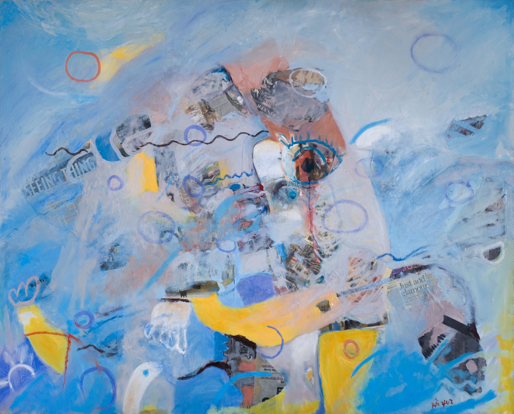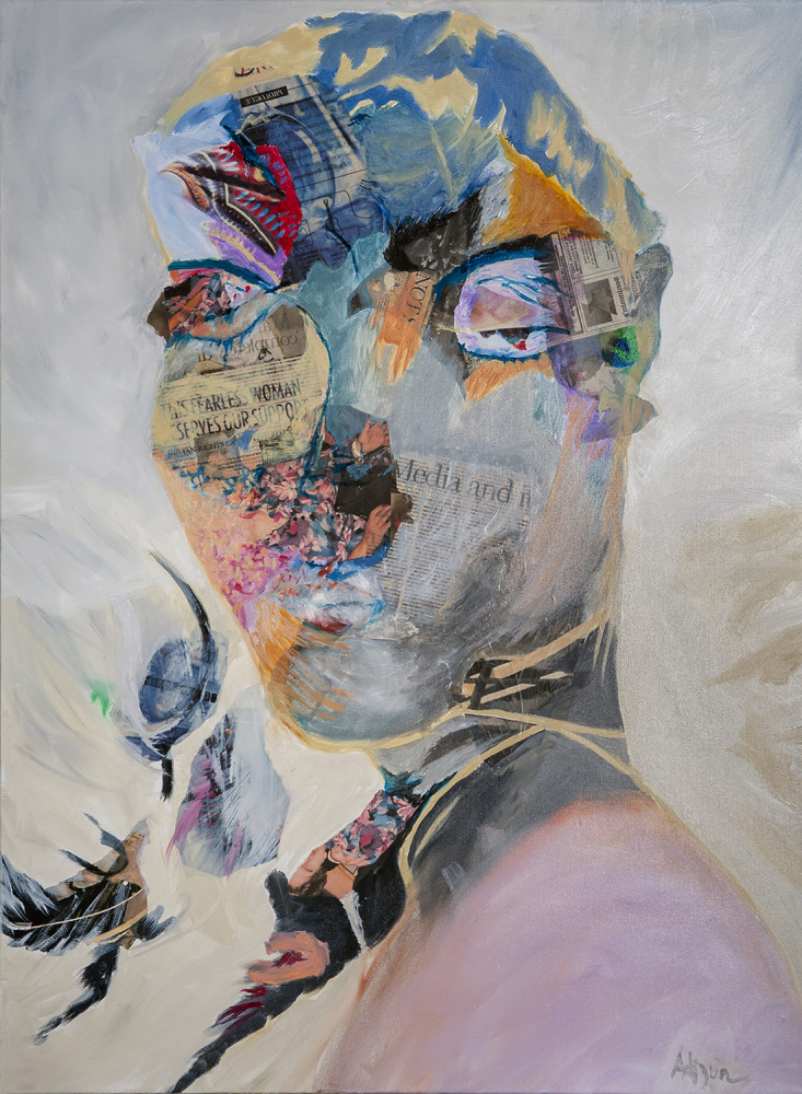 Zur's paintings reflect her profound interest in ancient knowledge and the concept of a "connector"—an umbilical cord linking humanity to both the distant past and the future. This idea of connection inspires much of her artistic exploration. Using oil paint, she incorporates collage elements, including photographs taken randomly in her daily life and headlines from newspapers. Her work seeks to give shape to the hidden forms of this shared knowledge, uncovering a deeply personal interpretation of a collective past.