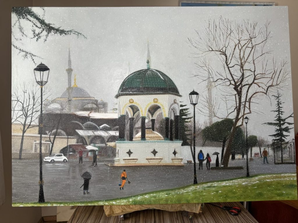 Hüsniye Uğur was born in 1986 in Silifke, Mersin, Turkey, and developed an early passion for painting that has remained central to her life. After spending her formative years in Silifke, she moved to Ankara to pursue her studies at Hacettepe University, later relocating to Istanbul in 2010 for professional opportunities. Since 2014, she has dedicated herself fully to painting, working daily in her studio with a focused and evolving practice.