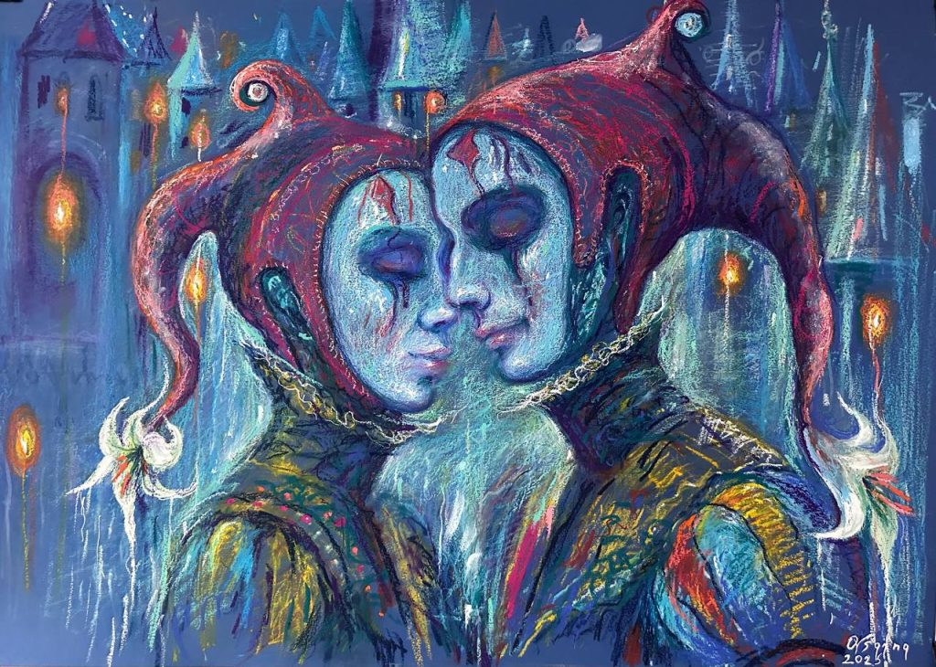 The collective image of Harlequin has long fascinated artists, poets, and philosophers. Perhaps this is due to the internal dissonance—between joy and sorrow, between lightness and something demonic—that stirs within the figure. It is precisely this contradiction that becomes fertile ground for the artist’s reflection, as every era rediscovers Harlequin anew, revealing different facets of the human condition.