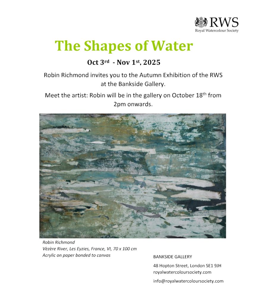 Opening this week in London at the Bankside Gallery next to Tate Modern is the Autumn Show of the prestigious Royal Watercolour Society. You will see from the invitation that I will be in the gallery to talk about my work on October 18th from 2pm onwards.