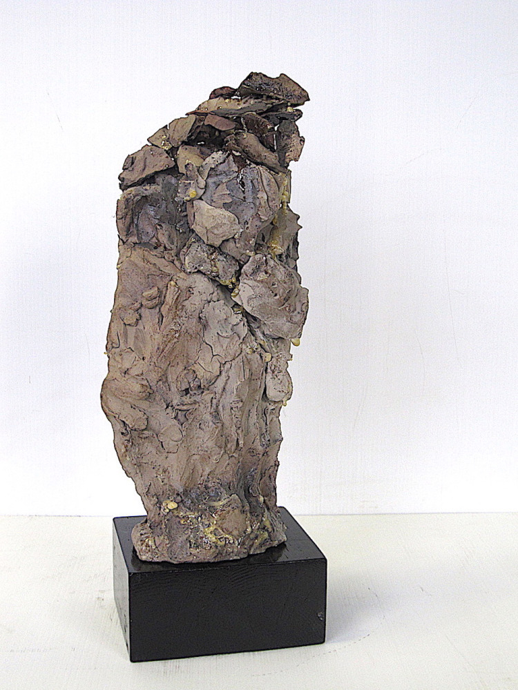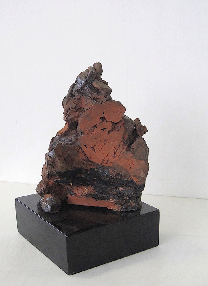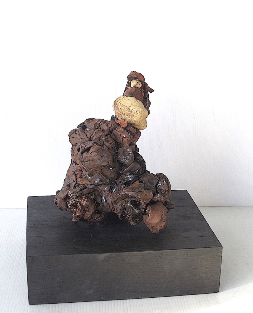 Perhaps in Paris - Terracotta, magnesium dioxide, painted wood 13 x 11.50 x 12 in. with base