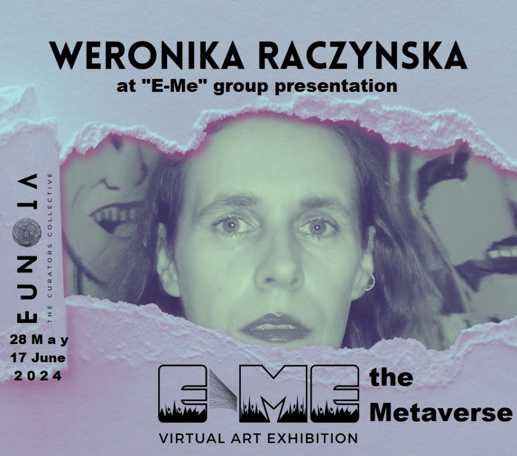 Weronika Raczynska participates in ”E-Me” group presentation in Spatial, the Metaverse for artists, creators and gamers among others. ”E-Me” group presentation can be seen for 3 weeks: from 28 May to 17 June 2024 in the Metaverse and presents works of art of 28 global visual artists. You can see images of works of art placed in a visualisation of a gallery of art in Spatial in the Metaverse. In this psychedelic interior design you can see images of 3 paintings by Weronika Raczynska: ”Face” oil painting, ”The Girl” acrylic painting, and ”The Nude” alkyd & acrylic painting. All 3 paintings by Raczynska are in full colour of red and make you feel the raw energy of painting medium within a virtual world. While exploring the ”E-me” group presentation in an artificial world of the Metaverse you can still feel human emotions while looking at images of Raczynska’s paintings.
