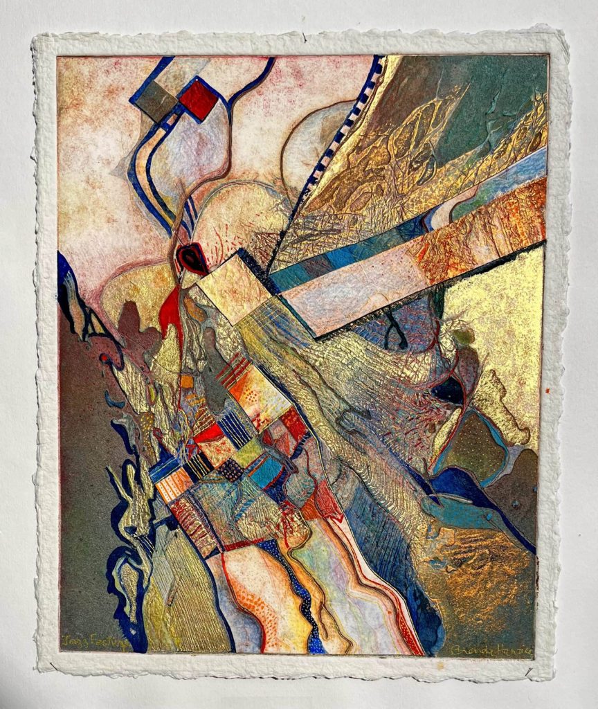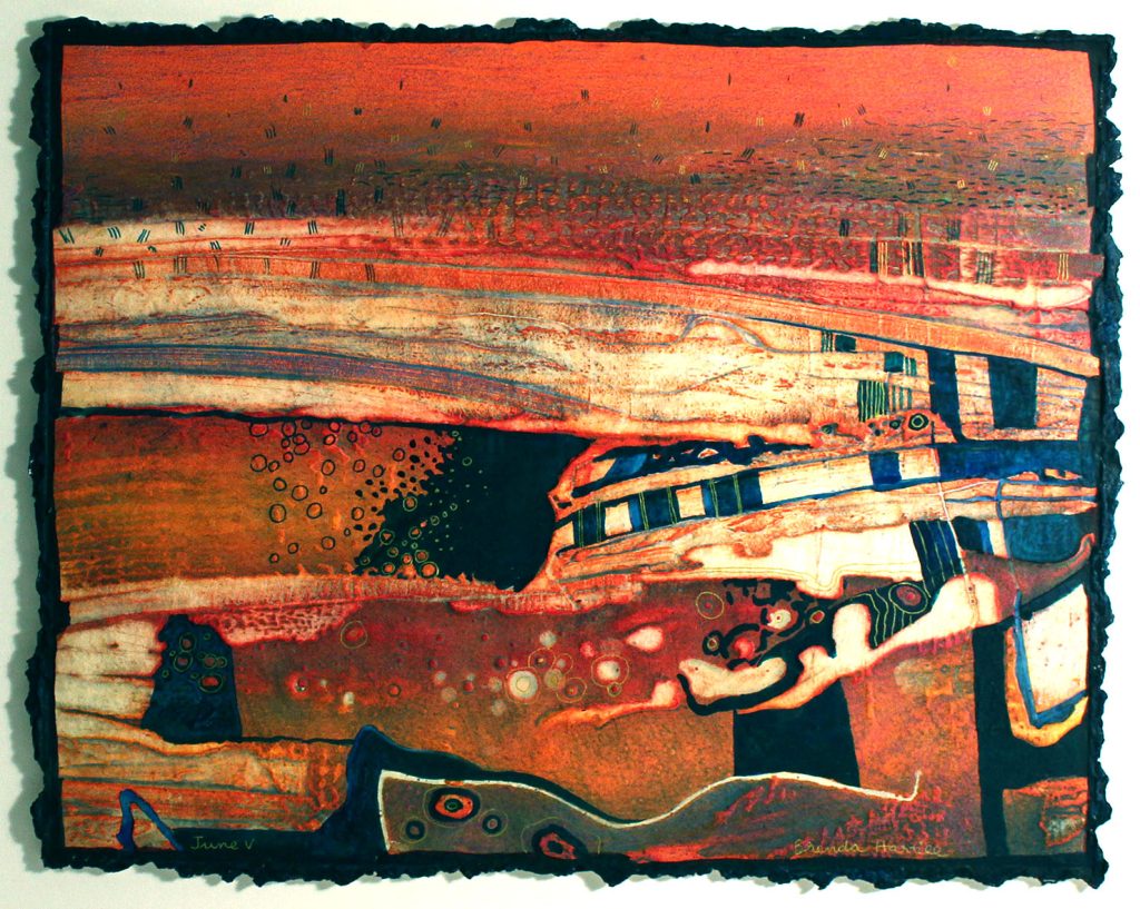 Born in London and raised in New Zealand, Brenda Hartill graduated with honours from Elam School of Fine Art in Auckland. She returned to the UK to study theatrical design at Central School of Art and Design, working in British theatre, including the West End and the National Theatre. In the early 1980s, she turned to printmaking and has since exhibited widely. She is a member of the Royal Society of Painter-Printmakers and the Rye Society of Artists. Her publications include the book 'Collagraphs and Mixed Media Printmaking' and an instructional DVD titled 'A Sculptural Approach to Printmaking'. Hartill has led numerous workshops in Spain and the UK and continues to exhibit in major galleries including Bankside Gallery, the Attic Gallery, and others.