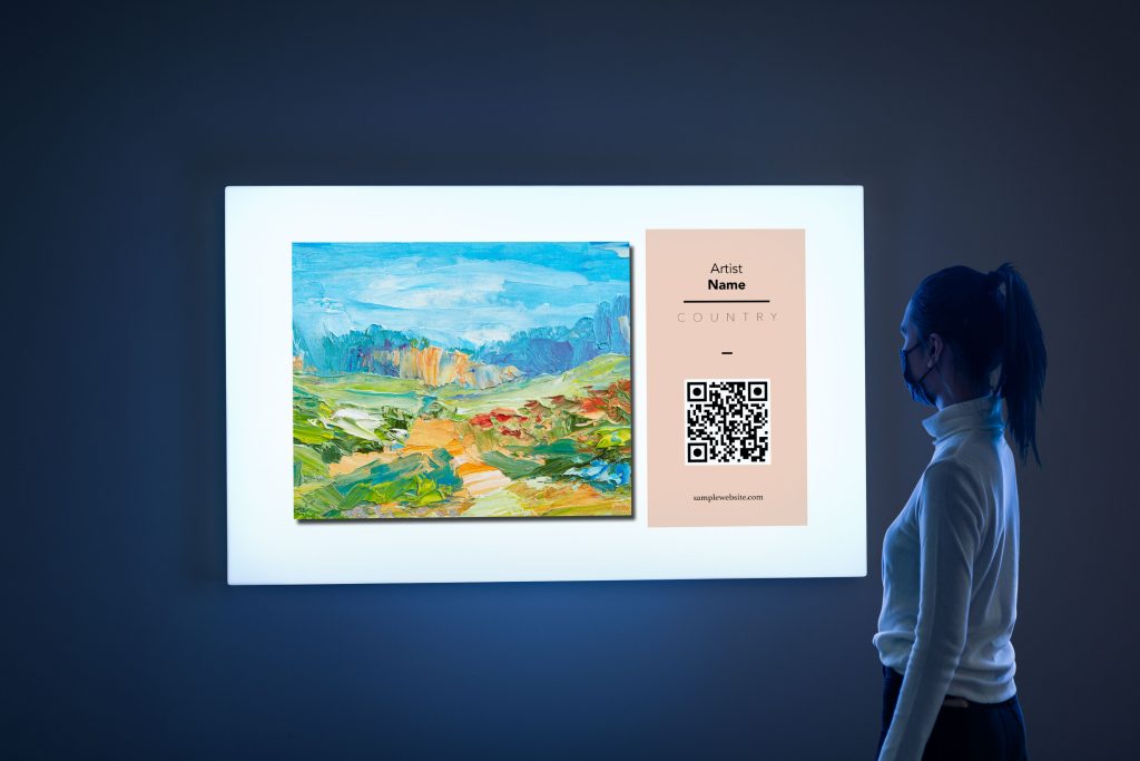 How will my art be shown? Our display consists of a simple slideshow. Each artist's slide includes their name, country, one image, image details and a link to your website. Each slide stays still for about 10 seconds at a time. The total display includes around 70 artists so the total slideshow is about than 15-18 minutes. So each image shows about 4-5 times per hour.