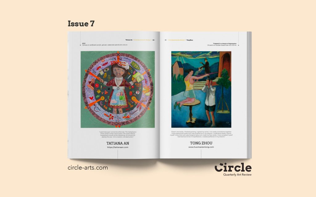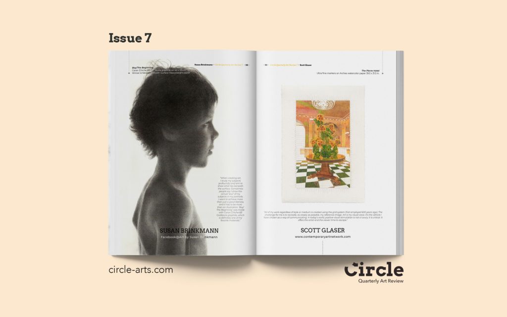 The 7th issue of Circle Quarterly Art Review includes 77 visual artists from around the globe working in a variety of styles and disciplines. When selecting the artworks for the pages of this issue, my goal was to provide a multiplicity of approaches of bold, distinctive pieces that each show a high level of technique, creativity and uniqueness. In synthesizing the selection to produce a cohesive anthology, I look for unity which may come from obvious harmonies in color, composition, media, concept or context, but most often I find balance in striking contrast.