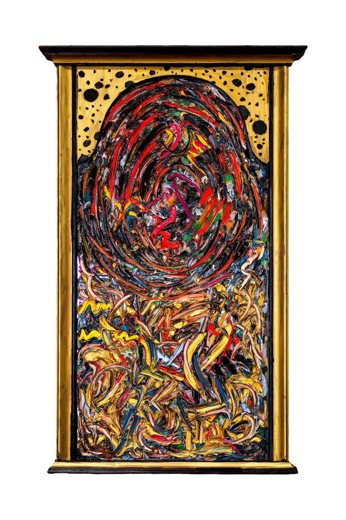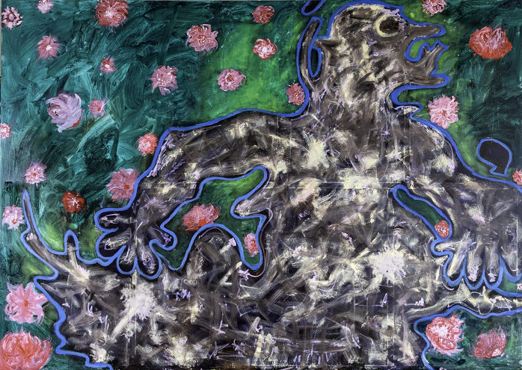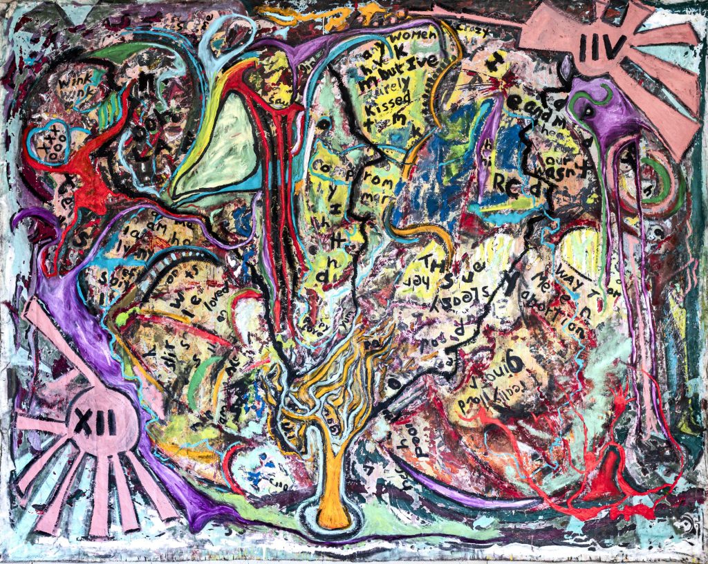 "I paint in oil my uncensored self primarily on large-scale canvases. I go as deeply as I can into my depthless being without inhibition or shame. Honesty cleanses."