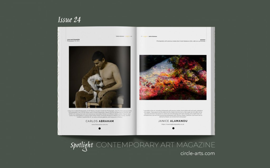 Welcome to Issue 24 of Spotlight Magazine, an edition that mirrors the profound narratives and aesthetic brilliance of today’s global art scene. This issue is a journey through diverse artistic landscapes, offering an introspective view into the lives and works of artists who redefine boundaries and challenge the norm. Each page is a celebration of creativity, from the striking photographic works of Carlos Abraham to the vibrant and textured paintings of Gayle Printz. Through these collections, we invite our readers to explore a world where art is not only viewed but experienced, and to consider the enriching possibility of collecting unique pieces that resonate with personal and universal truths.