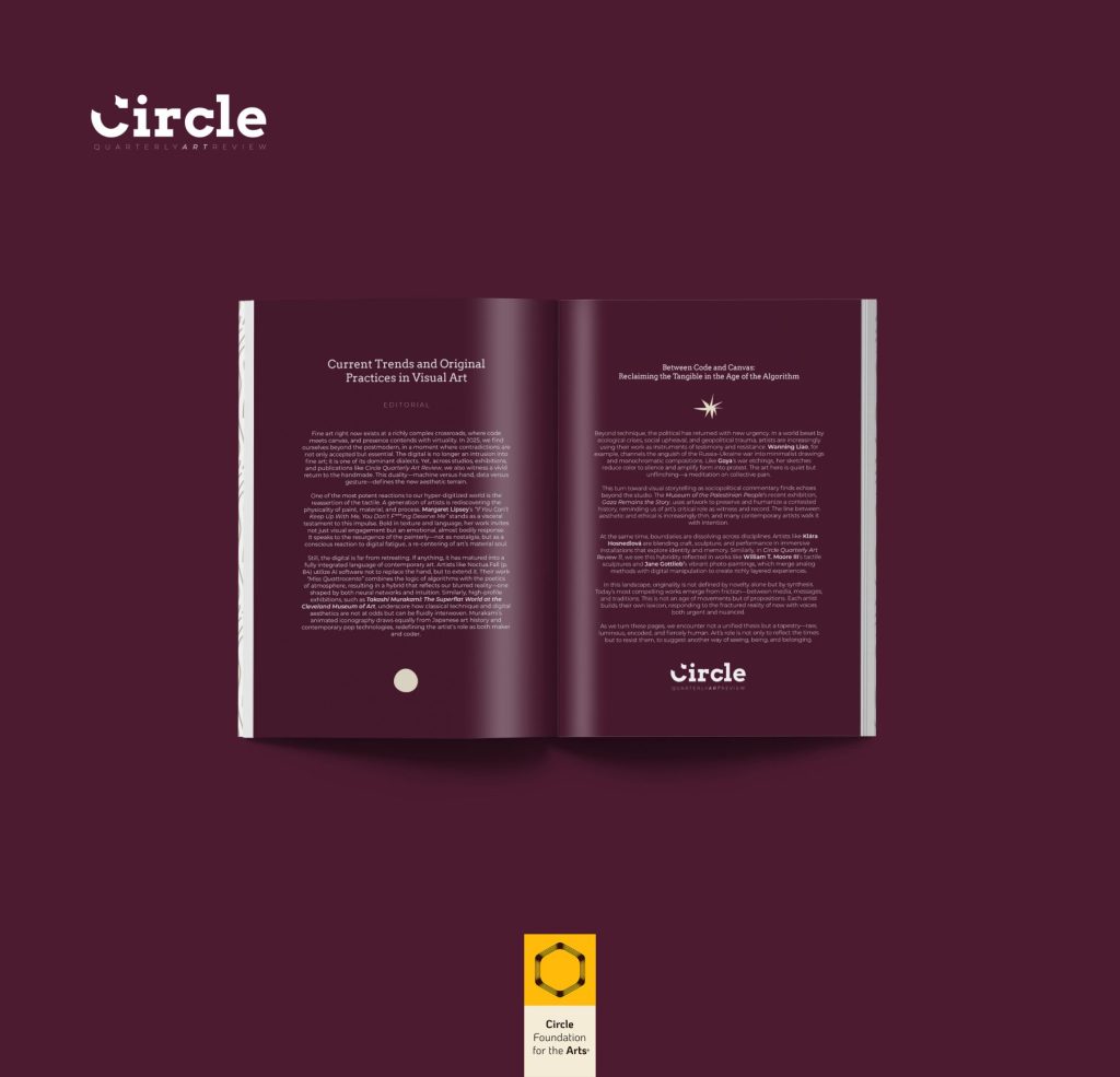 Welcome to the 11th edition of Circle Quarterly Art Review. My intent in curating this issue is to present an international array of contemporary artists whose work challenges, inspires, and reflects trends and original directions.