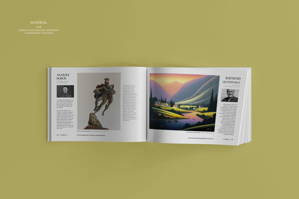 Delve into the 4th volume of Art IDEAL book and discover a unique collection of remarkable artists. As you leaf through the pages, you will have the opportunity to explore each an impressive variety of takes on fine art and discover each artists unique practice. Whether you are drawn to traditional mediums or fascinated by innovative digital creations, you will find a rich tapestry of artistry within these pages.
