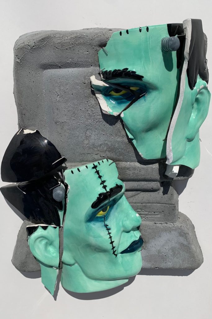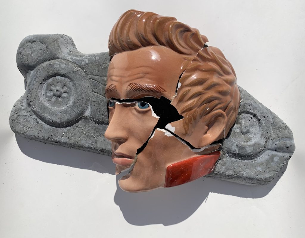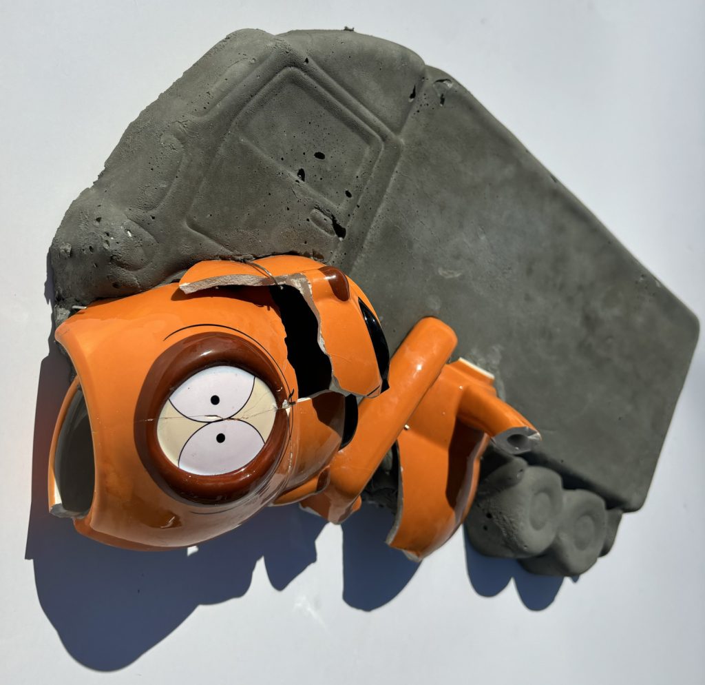 I Killed Kenny! - Broken ceramics on molded concrete 16 x 12.5 x 5 in.