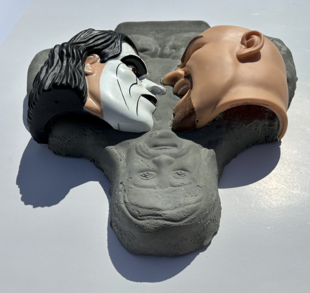 Face to Face (America at Odds) - Painted vinyl on molded concrete 13 x 13 x 4 in.