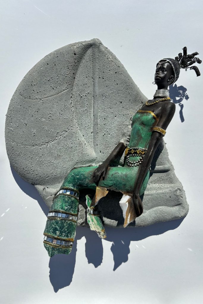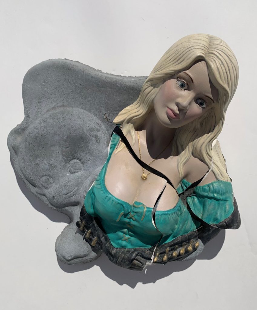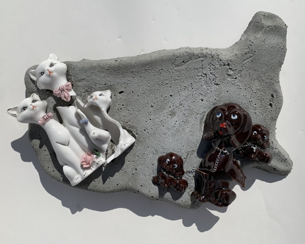 Psychotic sweethearts - Broken ceramics on molded concrete 15 x 9 x 3 in.