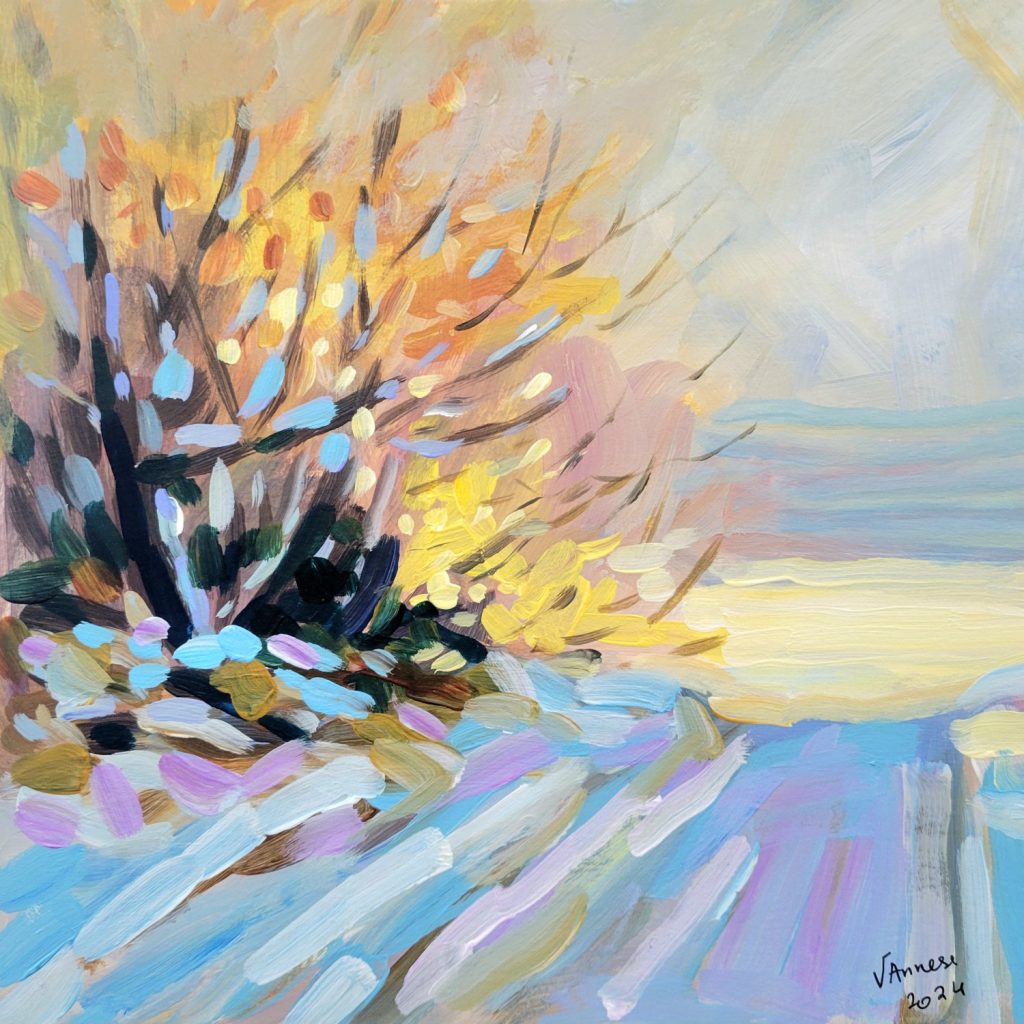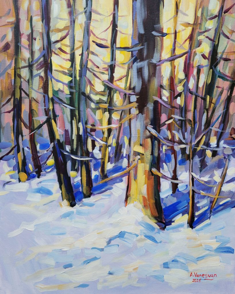Focusing primarily on acrylics, she occasionally experiments with oils to achieve dynamic textures. Her recent series revolves around winter and early spring trees, emphasizing their delicate yet resilient presence in nature. Through her work, Vanesyan strives to bring a sense of tranquility and appreciation for everyday beauty to her audience.