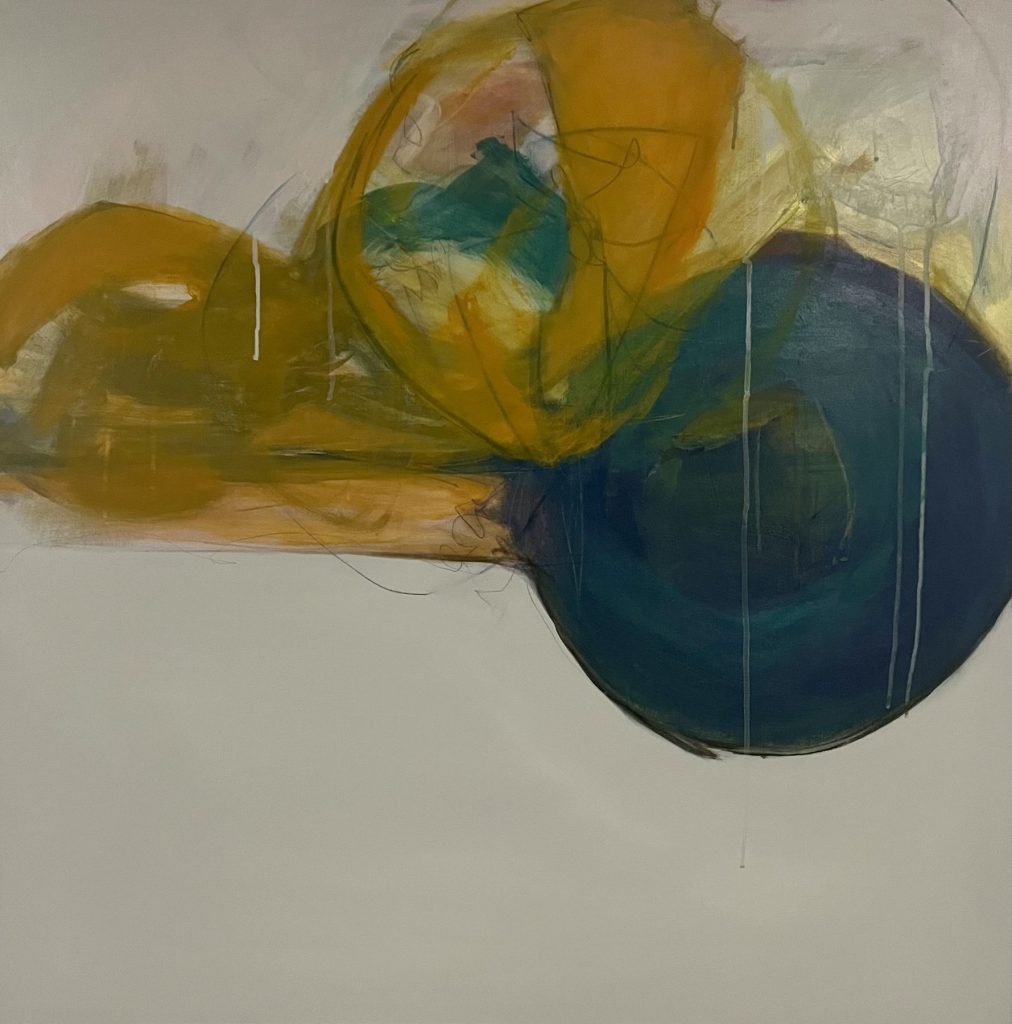 The breathtaking landscapes of western North Carolina—reminiscent of her rural New York childhood—continue to inspire her. She embraces vibrant color, organic shapes, textures, layering, and movement, using mainly acrylics and incorporating pencil marks for added texture.