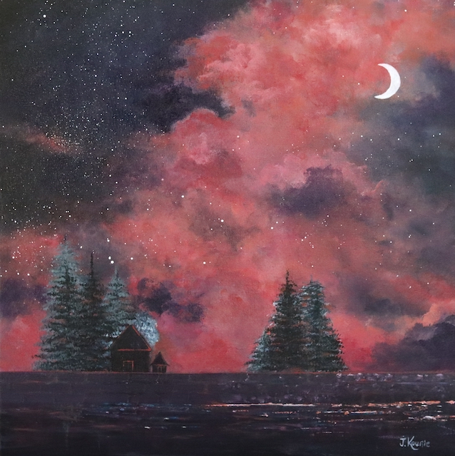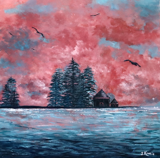 Self-taught, professional painter from Montreal, Johanne Kourie has experimented with several mediums over the past few years, such as ink, charcoal, pastel, oil and acrylic. The chemistry of colors fascinates her, she studies and tests them until she obtains the perfect mixture for each work. Nature, mainly the sky and the clouds, is a constant source of wonder, rejuvenation and inspiration. It is particularly found in the impressionist style.