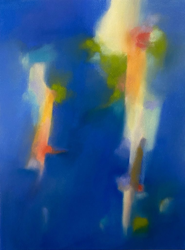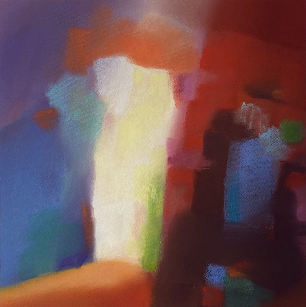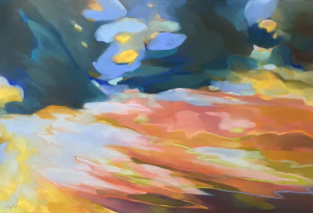 I start new artworks by selecting the colours, looking for interesting combinations to express the particular atmosphere I want the artwork to convey, adding more as the work progresses. I start boldly and with a clear intent, with a minimum of planning. I use a sturdy cotton paper that tolerates a lot of changes. My favourite stage is developing the motive, trying out different ideas, techniques and colours to make the composition work. My artworks is simply made by moving, shaping and blending the pastel pigments on the papers surface using hands and fingers, creating all the nuances needed to express the delicate transitions of the light as it envelops the land. The final stage is when the memory, atmosphere and motive goes hand in hand and the artwork has become independent.