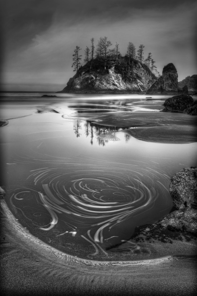 I work exclusively in black and white. This medium best relates the landscape’s shapes, lines, and tones and more fully captures what I am viewing when I look at a scene. My work process is multi-dimensional starting with vision and capturing and concluding with designing and expanding from vision to print. I find the creation of photographic art today to offer endless possibilities for creativity and the making and sharing of creative expression. For many years my art centered on the techniques of the process for making an image but for the last decades my work has been defined by my personal vision of exploring new looks to expand my work from beyond the seen to the unseen. I am always looking for what is beyond the surface of the scene and how I can portray further creativity.